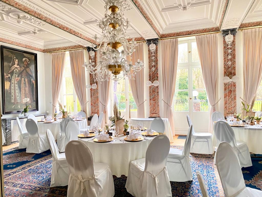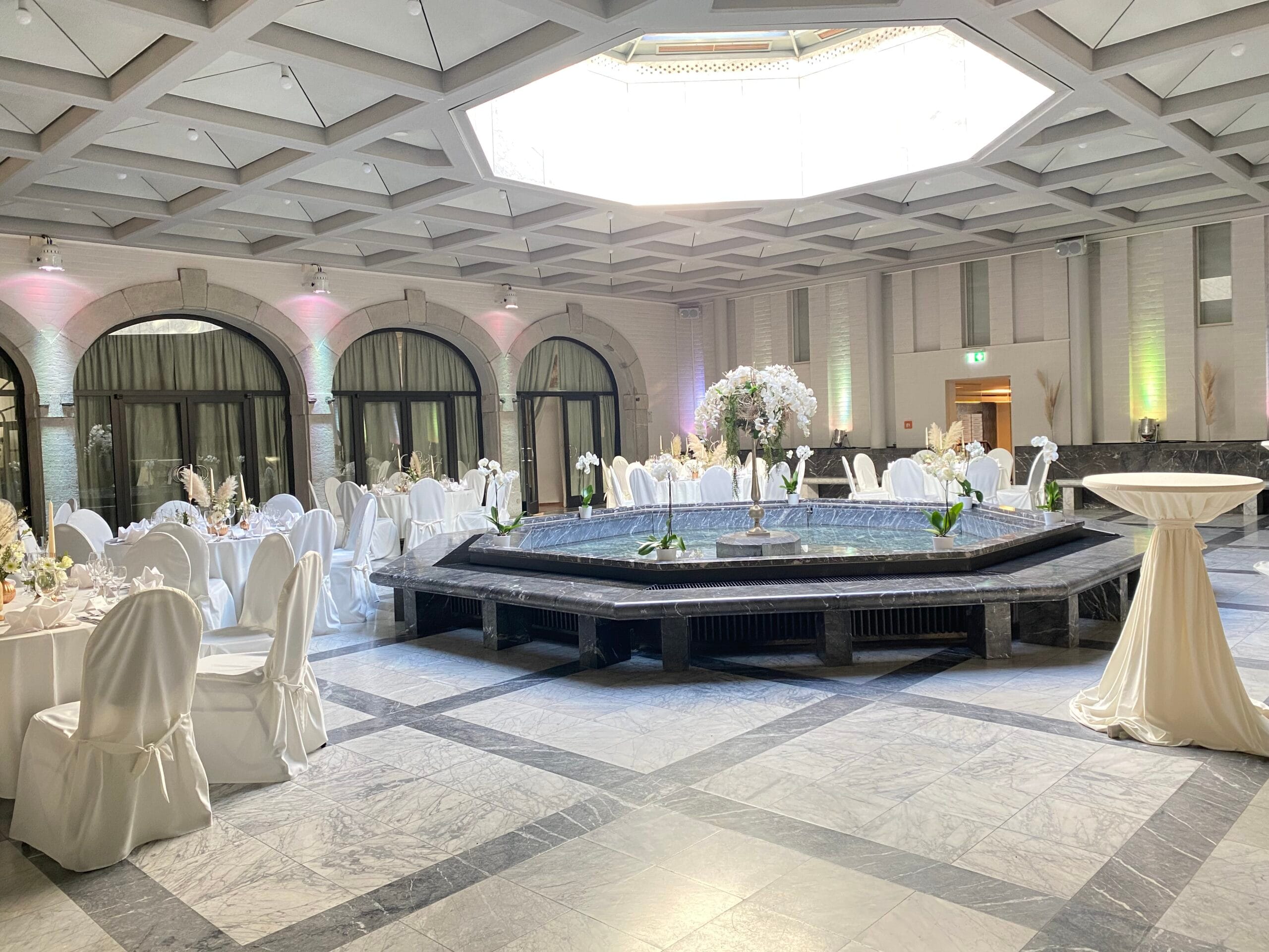 Unser Atrium, das Herz des Schlosses mit seinem klassischen Brunnen, bietet Platz für 100 bis 300 Gäste und schafft eine elegante, einladende Atmosphäre. Für festliche Anlässe im großen Stil steht der Maastrichter Saal zur Verfügung, der zwischen 84 und 250 Personen fasst und durch seine stilvolle Einrichtung besticht.